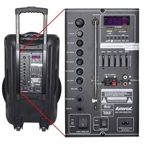 Com a caixa amplificada portátil bateria, modelo ACA 1100 DEZOITÃO da Amvox, você faz a festa em qualquer lugar do planeta. Portátil, retrátil e super leve, ela te proporciona 1100W RMS de potência e incrível fidelidade sonora. Agora com a nova função TWS, onde permite que até duas caixas da mesma família funcionem simultaneamente com até 10 metros de distância de uma caixa para outra, conectadas a um único Smartphone, proporcionando aumento significativo de potência. Não utilize cabos! Com a Caixa de som amplificadora da Amvox você utiliza a tecnologia Bluetooth e pareia seu smartphone, notebook ou tablet para reproduzir sua playlist completa em mp3. Utilize ainda o conector de microfone (não incluso) ou instrumentos, faça incríveis apresentações, palestras, stand-ups ou cante muito via karaokê. Divirta-se!