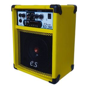 A caixa de Som Amplificada modelo RD 280 da fabricante E. Sound Industria, vem se destacando no mercado por sua qualidade sonora, design e acabamento. Pratica, leve, compacta, versátil e funcional, possui 40W RMS de potência, entradas USB, SD card, rádio FM e conexão Bluetooth. Além de possuir entrada auxiliar RCA permitindo a conexão de TV, PC, Celular... Possui também entrada para Microfone, Violão, Guitarra entre outros, que você pode usar de varias maneiras: Simultaneamente Microfone e Instrumento ou somente Microfones ou somente instrumentos. Possuí também equalização para graves e agudos. Especificações Técnicas: Potência em RMS: 40W Potencia Musical: 80w Falante: Triaxil - 6 polegadas Entradas: 2 Canais Independentes Canal 1: Mic/Guitar - Microfone, Violão, Cavaquinho, e Guitarra Line/Active Guitar Canal 2: Auxiliar - , , , tablets, celulares, MP3, CD, DVD, TV Bluetooth, Entrada USB, SD Card, de FM com Controle Remoto. Equalizador: 2 vias  Graves e Agudos  Acabamento: Material Sintético na cor Amarela e Cantoneiras ABS injetado. Alimentação: Corrente Eletrica - Bivolt Automático  com Fonte Chaveada 100 - 240V  Dimensões - 325 x 258 x 186 mm.   Alt. X Larg. X Prof  . Peso: 4,500 Kg Homologação Anatel: 003052112961