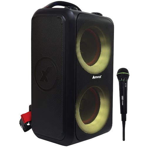 I n f o m a ç õ e s t é c n i c a s P r o d u t o: N o v o M a r c a: A m v o x M o d e l o: ACA 600 B a g v o x F u n ç ã o P o w e r X (T w s ): C o n e c t e 2 c a i x a s a m p l i f i c ad a s v i a b l u e t o o t h d a m e s m a f a m í l i a e m u l t i p l i q u e o s o m Cor: Preto V o l t a g e m: 110/220V (b i v o l t a u t o m á t i c o) P o t ê n c i a : 6 0 0 W R m s T e c n o l o g i a D o u b l e C o i l: S i m (F a l a n t e W o o f e r c o m B o n i n a D u p l a) D i â m e t r o do w o o f e r : 6.5 p o l e g a d a s (2 unidades) D i â m e t r o do t w e e t e r: 1 p o l e g a d a s (1 unidade) B a t e r i a : In t e r n a r e c a r r e g á v e l A u t o n o m i a : A t é 4 h o r a s B o t ã o li g a /d e s l i g a: S i m D i s p l a y e m l e d: Sim A l ç a d e t r a n s p o r t e c e n t r a l : S i m A l ç a d e t r a n s p o r t e l a t e r a l : A l ç a s d u p l a s a j u s t á v e i s e r e m o v í v e i s L e d: Sim B o t ã o l ig a /d e s l i g a l e d: Sim F u n ç ã o p o w e r b a n k: Sim