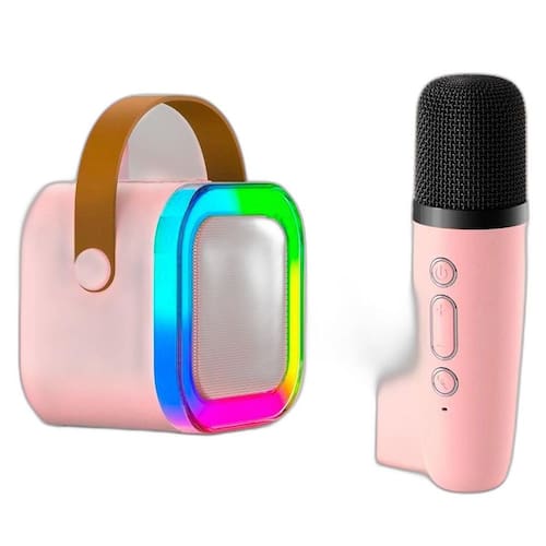 Caixa de Som Karaokê Infantil Bluetooth Microfone Sem Fio Com Led Rgb Desfrute de som de alta qualidade em qualquer lugar, sem fios, graças à conectividade Bluetooth e surpreenda seus amigos com a função exclusiva de mudança de voz, adicionando ainda mais diversão às suas festas