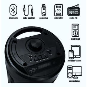 Caixa de som portátil torre bluetooth rádio fm mp3 pen drive usb sd microfone controle bateria led rgb grasepEssa caixa de som portátil tem formato de torre, fabricada em plástico abs de alta resistência,Vem com alça de transporte que também serve como suporte pata seu celular.A caixa de som portátil torre é completa, pois vem bluetooth 5.0 de longo alcance até 10mts , o que te permiteVocê curtir suas músicas preferidas com total liberdade sem a necessidade de conectar nenhum acessório externo.Ela ainda tem rádio fm e você ainda pode curtir aquela sua playlist em mp3 salva em seu pen drive, pois elaPossui entrada usb e entrada para cartão micro sd.A caixa de som portátil torre bluetooth rádio fm mp3 pen drive usb sd microfone controle bateria led rgb grasep Oferece um som natural com muita clareza e nitidez, com seu formato torre ela projeta uniformemente o som produzido porEla.Esqueça amplificador pois essa caixa de som portátil tem som forte e seu formato torre espalha por longas distâncias o seu som.Com bateria de longa duração você poderá carregar sua caixa de som portátil torre por onde você quiser e você tem seu som preferidoPor muito mais tempo.É a solução mais completa para você que quer uma caixa de som robusta, segura e acima de tudo que produza um som de altíssima qualidade com graves, médios e agudos muito bem definidos.Além de tudo ela ainda vem com controle remoto e microfone, caso queira se arriscar no karaokê,e para completar a caixa de som portátil torre ainda vem comLed rgb de alta luminosidade que completa sua festa onde quer que você esteja. Código anatel: 09104-19-12671Especificações técnicas;. Rádio fm integrado. Potencia: 20w. Conexão bluetooth: v5.0. Entradas usb. Cartão micro sd. Alimentação: 5vdc via porta usb . Bateria recarregável 1800mah. Frequência de resposta: 150 18000hz. Impedância: 4 ohms. Sensibilidade: 80db. Diâmetro do alto-falante: 10,2cm. Dimensões: 17 x 17 x 40 cm cxla . Conexão para 1 microfone. Display led com indicador de funções. Ideal para pcs, notebooks, smartphones, tablets, tvs, mp3 e mp4 players. Possui alça para transporteNão acompanha fonte ac.Itens incluso:. 01 caixa de som portátil torre d-s30. 01 cabo usb x micro usb v8. 01 cabo p2 x p2. 01 manual de instruções. 01 microfone. 01 controle remoto. 01 alça de ombroGarantia:. Garantia de 30 dias contra defeito de fábrica contados a partir da data de recebimento do produto.