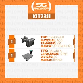 Caixa Supermercado Empacotador Preto 2,00m Check Out e Balança 30kg Urano