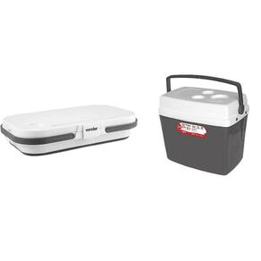 Kit composto de 1 Caixa Térmica 34L Botafogo Cinza + 1 Cesto dobrável Camping 16L Vonder - Caixa Térmica 34L Botafogo Cinza Capacidade : 56 Long Necks 210 ml ou 08 Garrafas Pet 1.5 L Sempre pensando em praticidade para o seu dia-a-dia e para os momentos de lazer, a Botafogo apresenta suas caixas térmicas. Produzidas no Brasil, elas são leves, duráveis e fáceis de carregar pois possuem uma resistente alça de polietileno. Seu exterior possui acabamento alto brilho e é feita com material 100% virgem, atóxico e sem odor, o que a torna ideal para uso de alimentos. Suas 5 lâminas em EPS proporcionam excelente Isolamento térmico, e consequentemente, maior tempo de conservação. Outro detalhe importante é que sua tampa, com porta copos, pode ser Utilizado como bandeja. E estão disponíveis nas cores: preta, cinza, azul e vermelha Caixa térmica é Botafogo. Caixa térmica BTF 34 Alça para transporte Tampa Multiuso Capacidade : 56 Long Necks 210 ml ou 08 Garrafas Pet 1.5 L Medidas 31,8 x 47,4 x 40,6 cm - LxCxH Peso: 3,01 Kg; Marca: Botafogo Lar & Lazer; Cor : Cinza; : 3 meses; - Cesto dobrável Camping com alças 16 litros VONDER Conteúdo da Embalagem: 1 Cesta dobrável com alças. Possui design moderno e compacto, proporcionando melhor aproveitamento de espaço para guardá-lo após o uso, além de alças que possibilitam maior praticidade no transporte. Conta ainda com tampa que pode ser facilmente convertida em uma mesa com porta-copos e porta-celular/tablet. Indicado para uso doméstico, camping, piqueniques, pesca, praia, churrasco e muito mais. Para expandir, pressione o fundo até obter o formato completo. legal: 90 dias Detalhes Técnicos Material: Polipropileno e borracha termoplástica Dimensões: Aberto: 450 mm x 290 mm x 235 mm; Fechado: 450 mm x 290 mm x 95 mm Dimensões da mesa C x L x A : 450 mm x 290 mm x 160 mm Capacidade: 16 Litros Capacidade máxima de carga: 5 kgf Massa aproximada peso : 1,28 kg