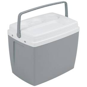 A tampa possui um design diferenciado, com um suporte para bebidas e objetos, trazendo ainda mais praticidade para o seu dia a dia. Além disso, a caixa térmica conta com uma alça ergonômica, tornando o transporte mais confortável e fácil.