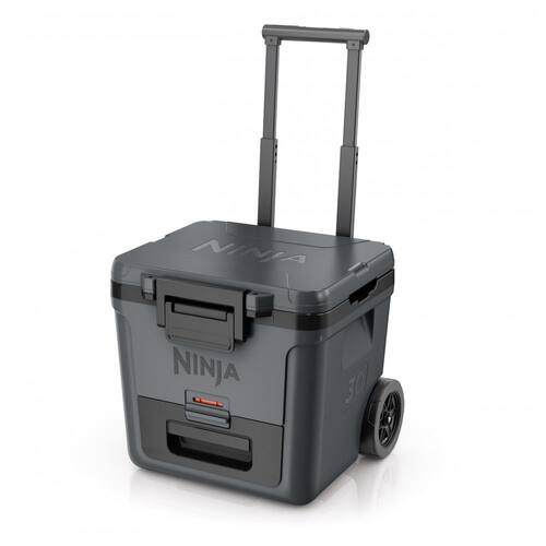 A caixa térmica com rodas Ninja FrostVault 30QT foi desenvolvida para conservação de bebidas e alimentos em ambientes externos, com isolamento de alto desempenho e gaveta inferior em zona seca refrigerada. A tecnologia FrostVault transfere o frio do compartimento principal para a gaveta Dry Zone, mantendo os alimentos frios, secos e separados do gelo, em faixa de temperatura segura abaixo de 4,5°C por vários dias quando utilizada com gelo adequado.