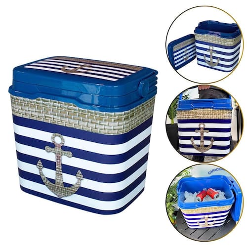 Caixa Térmica Cooler 29 Litros Para Camping Praia Piquenique Com capacidade de 29 litros, este modelo é compacto o suficiente para ser facilmente transportado, mas amplo o bastante para armazenar latas, garrafas, porções de alimentos ou gelo. É uma excelente opção para quem deseja manter os itens sempre frescos durante passeios na praia, viagens, acampamentos, pescarias ou mesmo para em entregas e transporte de produtos perecíveis. Dimensões: 386 X 285 X 375 mm comprimento x largura x altura Capacidade ideal para diferentes ocasiões Seu design foi pensado para maximizar o espaço interno sem comprometer a portabilidade. A tampa com encaixe firme contribui para uma vedação eficiente, que ajuda a manter a temperatura por mais tempo. Conservação térmica de qualidade A estrutura da caixa é fabricada em material plástico resistente com isolamento térmico eficiente, que mantém o interior refrigerado por diversas horas, dependendo do uso e das condições externas. Quando utilizada com gelo, bolsas térmicas ou blocos de gelo reutilizáveis, o tempo de conservação é ainda maior. Essa eficiência térmica é ideal para quem precisa manter alimentos e bebidas gelados sem depender de energia elétrica, seja em ambientes externos ou em trajetos de viagem. A caixa conta com alça superior resistente, facilitando o transporte mesmo quando cheia. Seu corpo é robusto, com excelente acabamento, o que garante longa vida útil mesmo com uso constante. A superfície é lisa, facilitando a limpeza após o uso. Além disso, o material da caixa é resistente a impactos e variações de temperatura, tornando-a ideal tanto para lazer quanto para uso mais intenso ou . Características técnicas: Capacidade: 29 litros Conserva a temperatura por várias horas Tampa com vedação firme e segura Alça superior resistente para transporte Estrutura com parede térmica de alta eficiência Material de fácil higienização Ideal para gelo, bebidas, alimentos e outros produtos que exigem refrigeração Cuidados com o produto: Lave com água e sabão neutro após o uso Evite impactos fortes na tampa ou nas bordas Não utilize objetos pontiagudos no interior Armazene em local seco e arejado quando não estiver em uso Evite exposição prolongada ao sol quando vazia Ean: 7908439806725