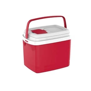 Cooler com tampa de acesso rápido, livre de Bisfenol (BPA Free), design moderno, alças laterais embutidas, alça de mão articulável e retrátil, tampa com trava e isolamento térmico em isopor. Ideal para quem busca maior praticidade nos momentos de lazer.