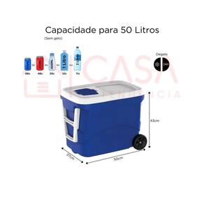 Descrição: Caixas Térmicas para garantir a melhor eficiência térmica para os momentos de lazer, dia a dia ou . Possuem alta resistência, ótimo custo-benefício, design funcional, moderno e prático. Com isolamento Poliuretano PU que permitem uma melhor performance e maior tempo de degelo. Livre de Bisfenol BPA Free . Características: - Degelo: Até 24 horas utilizando 20% da capacidade com gelo; - Rodas para facilitar o transporte e acabamento robusto; - Caixa Térmica com tampa de acesso rápido; - Livre de Bisfenol BPA Free ; - Design moderno; - Alça de mão articulável e retrátil; - Tampa com trava e isolamento térmico em isopor; - Maior praticidade nos momentos de lazer; - Dimensão: Comprimento 50cm, Largura 37cm, Altura 43cm; - Com Porta Copos; Capacidade Sem Gelo : Latas de 350 ml - 68 Unidades Ou Latas de 473 ml - 48 Unidades Ou Garrafas de 600 ml - 25 Unidades Ou Garrafas de 1L - 12 Unidades Ou Garrafas de 2L - 11 Unidades Dicas de Uso e Instruções: - Nunca lave o produto por imersão, cuide para não danificar o isolamento térmico; - Não aplicar carga peso acima do especificado; - Produto atóxico; - Transportar sempre com a tampa fechada; - Não utilizar objetos abrasivos como esponja de aço, fibras abrasivas ou similares para sua limpeza; - Limpeza interna: se houver cheiro em seu interior, lave-o com água e sabão neutro; - Posteriormente, deve-se encher o produto com uma solução de água com uma colher de sopa de Bicarbonato de Sódio; - Limpeza externa: deve ser executada com sabão, ou detergente e esponja e água; - Não colocar objetos pontiagudos sem a devida proteção; - Os alimentos devem ser sempre embalados, evitando o contato direto com o interior da caixa; - A vida útil do produto está diretamente relacionada aos cuidados tomados durante seu uso, armazenagem e transporte. Especificações: Marca: Soprano : 3 Meses Marca: Não Informado