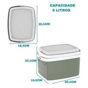 CAIXA TERMICA 5 LITROS TROPICAL SOPRANO Cooler com capacidade de 5 Litros, alça de mão articulável, livre de bisfenol BPA FREE e isolamento térmico em isopor EPS . Cooler com praticidade e ótima eficiência térmica. Capacidade sem gelo : Latas de 350 ml - 6 Unidades Ou Latas de 473 ml - 6 Unidades