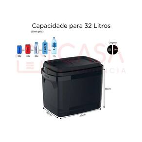 Descrição: Caixas Térmicas para garantir a melhor eficiência térmica para os momentos de lazer, dia a dia ou . Possuem alta resistência, ótimo custo-benefício, design funcional, moderno e prático. Com isolamento em Isopor EPS que permitem uma melhor performance e maior tempo de degelo. Livre de Bisfenol BPA Free . Características: - Degelo: Até 24 horas utilizando 20% da capacidade com gelo; - Caixa Térmica com tampa de acesso rápido; - Livre de Bisfenol BPA Free ; - Design moderno; - Alças laterais embutidas; - Alça de mão articulável e retrátil; - Tampa com trava e isolamento térmico em isopor; - Maior praticidade nos momentos de lazer; - Dimensão: Comprimento 45cm, Largura 33cm, Altura 38cm ; - Com Porta Copos; Capacidade Sem Gelo : Latas de 350 ml - 50 Unidades Ou Latas de 473 ml - 40 Unidades Ou Garrafas de 600 ml - 24 Unidades Ou Garrafas de 1L - 11 Unidades Ou Garrafas de 2L - 7 Unidades Dicas de Uso e Instruções: - Nunca lave o produto por imersão, cuide para não danificar o isolamento térmico; - Não aplicar carga peso acima do especificado; - Produto atóxico; - Transportar sempre com a tampa fechada; - Não utilizar objetos abrasivos como esponja de aço, fibras abrasivas ou similares para sua limpeza; - Limpeza interna: se houver cheiro em seu interior, lave-o com água e sabão neutro; - Posteriormente, deve-se encher o produto com uma solução de água com uma colher de sopa de Bicarbonato de Sódio; - Limpeza externa: deve ser executada com sabão, ou detergente e esponja e água; - Não colocar objetos pontiagudos sem a devida proteção; - Os alimentos devem ser sempre embalados, evitando o contato direto com o interior da caixa; - A vida útil do produto está diretamente relacionada aos cuidados tomados durante seu uso, armazenagem e transporte. Especificações: Marca: Soprano : 3 Meses Marca: Não Informado