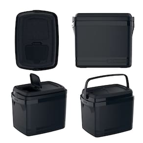 Exclusiva tampa de acesso rápido que facilita o uso, alças laterais embutidas, alça de mão articulável e retrátil, tampa com trava mais segura para levar, tampa comporta-copos numerados, isolamento térmico de isopor. Degelo de 24 horas. Produto com design premiado. Livre de Bisfenol (BPA Free).