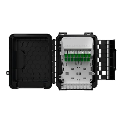 É utilizada em redes ópticas externas. Equipada com suporte para instalação em postes, paredes e fachadas. Também é possível a instalação de suporte para cordoalha além de suporte acomodador de reserva técnica de cabos (ambos vendidos separadamente).