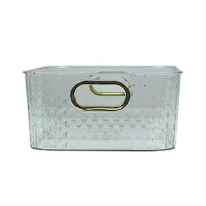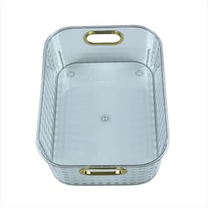 Organize seus ambientes com praticidade e elegância A cesta organizadora transparente com detalhe dourado é perfeita para quem busca aliar funcionalidade e sofisticação no dia a dia. Seu design moderno e minimalista valoriza qualquer espaço, seja na cozinha, despensa, banheiro, quarto ou escritório, deixando tudo no lugar certo e ainda agregando charme à decoração. Com estrutura resistente, é ideal para armazenar brinquedos, mantimentos, cosméticos, itens de higiene, acessórios e muito mais. A transparência facilita a visualização dos conteúdos, enquanto as alças douradas conferem um toque sofisticado, tornando o produto não apenas útil, mas também um item de estilo para sua casa. Garanta já a sua e transforme sua organização em uma experiência prática, bonita e eficiente Especificações Técnicas Material: PET 173g Tamanho: 28cm x 20,5cm x 9,8cm Cor: Transparente com detalhe dourado Uso indicado: Organização de ambientes diversos cozinha, quarto, banheiro, escritório, lavanderia etc. Diferenciais: Transparência para fácil visualização dos itens Alça reforçada com acabamento sofisticado em dourado Design moderno e versátil Imagens ilustrativas.