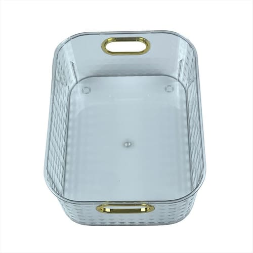 Organize seus ambientes com praticidade e elegância A cesta organizadora transparente com detalhe dourado é perfeita para quem busca aliar funcionalidade e sofisticação no dia a dia. Seu design moderno e minimalista valoriza qualquer espaço, seja na cozinha, despensa, banheiro, quarto ou escritório, deixando tudo no lugar certo e ainda agregando charme à decoração. Com estrutura resistente, é ideal para armazenar brinquedos, mantimentos, cosméticos, itens de higiene, acessórios e muito mais. A transparência facilita a visualização dos conteúdos, enquanto as alças douradas conferem um toque sofisticado, tornando o produto não apenas útil, mas também um item de estilo para sua casa. Garanta já a sua e transforme sua organização em uma experiência prática, bonita e eficiente Especificações Técnicas Material: PET 173g Tamanho: 28cm x 20,5cm x 9,8cm Cor: Transparente com detalhe dourado Uso indicado: Organização de ambientes diversos cozinha, quarto, banheiro, escritório, lavanderia etc. Diferenciais: Transparência para fácil visualização dos itens Alça reforçada com acabamento sofisticado em dourado Design moderno e versátil Imagens ilustrativas. Marca: Não Informado