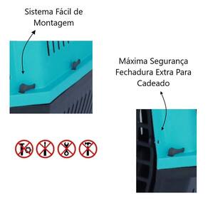 Especificações: - Marca: Alvorada - Produzida plástico resistente e atóxico - Higiênica: pode ser lavada - Com aberturas laterais permitindo maior circulação de ar - Apto para viagens de avião - Peso suportado de até 15Kg - Dispositivo para cadeado - Cor: Azul - Caixa de transporte tamanho N3