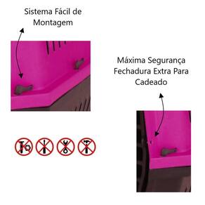 Especificações: - Marca: Alvorada - Produzida plástico resistente e atóxico - Higiênica: pode ser lavada - Com aberturas laterais permitindo maior circulação de ar - Apto para viagens de avião - Peso suportado de até 15Kg - Dispositivo para cadeado - Cor: Rosa - Caixa de transporte tamanho N3