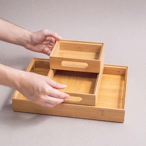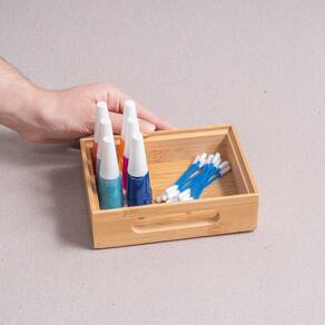 :: essa é a caixa vazada de bambu empilhável da OIKOS. :: versátil: bacana para guardar e organizar acessórios, itens de escritório, brinquedos, potes e muito mais! :: empilhável: você pode colocar uma caixa em cima da outra, além de deixar tudo bem organizado, otimiza o espaço no armário e na bancada. dica extra: dá também para empilhar tamanhos diferentes, fica lindo e bem prático. :: alça vazada: o espaço na lateral facilita o manuseio e transporte por onde você quiser. :: combina com tudo: cabe em diferentes ambientes. do quarto ao banheiro, da cozinha à sala! :: decorativa: o design moderno e o tom natural deixam o ambiente mais charmoso, podendo fazer parte da sua decoração. :: feita de bambu: material leve e ecologicamente correto. :: durável e higiênica: o bambu é resistente e tem propriedades que evitam a proliferação de bactérias, só precisa lavar e secar de acordo com as recomendações, combinado?