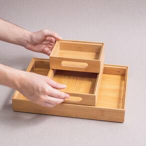 :: essa é a caixa vazada de bambu empilhável da OIKOS. :: versátil: bacana para guardar e organizar acessórios, itens de escritório, brinquedos, potes e muito mais! :: empilhável: você pode colocar uma caixa em cima da outra, além de deixar tudo bem organizado, otimiza o espaço no armário e na bancada. dica extra: dá também para empilhar tamanhos diferentes, fica lindo e bem prático. :: alça vazada: o espaço na lateral facilita o manuseio e transporte por onde você quiser. :: combina com tudo: cabe em diferentes ambientes. do quarto ao banheiro, da cozinha à sala! :: decorativa: o design moderno e o tom natural deixam o ambiente mais charmoso, podendo fazer parte da sua decoração. :: feita de bambu: material leve e ecologicamente correto. :: durável e higiênico: o bambu é resistente e tem propriedades que evitam a proliferação de bactérias, só precisa lavar e secar de acordo com as recomendações, combinado?