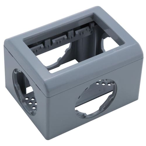 A Caixa Liz Multiuso, cor cinza, permite colocar em prática soluções de um sistema de instalação aparente com o uso em eletrodutos, ou seja, alterar a direção da instalação e ainda compor caixas duplas ou triplas através da luva de emenda, com resultado perfeito, rapidez e, o mais importante, sem quebra de paredes. Oferece ainda quatro opções de saída para eletrodutos em três bitolas (1/2, 3/4 e 1). Além da tampa para três Interruptores ou tomadas, que utiliza o prático sistema de encaixe da placa por pressão. Especificações Cor Cinza Material Termoplástico Altura 6 cm Largura 7.5 cm Comnto 9 cm Peso Bruto 0.07 kg