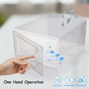 - O que você receberá: 12 caixas transparentes para sapatos com porta frontal transparente. Design empilhável e dobrável, orifícios de ventilação. Diga adeus aos sapatos dispersos. Diga adeus à bagunça.