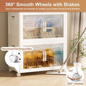 - ?Design empilhável e móvel?As caixas de armazenamento pioncrey com tampa podem ser empilhadas perfeitamente, economizando espaço de armazenamento e mantendo a estética. O mecanismo de bloqueio e ranhuras em ambos os lados garantem a estabilidade, compacidade e conveniência de manuseio ou dos recipientes de armazenamento. Quatro rodas lisas de 360° são embutidas na parte inferior do armário de armazenamento para facilitar a limpeza ou movimento, 2 das quais estão equipadas com freios para prender caixas de armazenamento de plástico