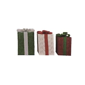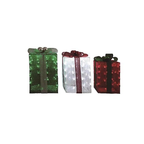 Essas caixas de presente decoradas adicionarão charme natalino a qualquer quintal! Nada é mais natalino do que caixas de presente embrulhadas em laços. Cada presente embrulhado de forma colorida é acentuado com uma fita amarrada em um laço, adicionando um toque festivo. Adicionar iluminação à sua casa proporcionará uma recepção calorosa para sua família e amigos. Coloque-os em sua varanda, gramado ou coloque-os dentro para criar o cenário sazonal perfeito. Esses presentes vermelhos, verdes e brancos são projetados com 180 luzes LED brancas alimentadas por um único plug-in aprovado pela UL. Ótimos para decorar embaixo da árvore de Natal e para decorar sua varanda, quintal ou escritório, eles iluminarão sua temporada de férias.