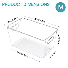 Simplifique o armazenamento e a organização. Estas caixas transparentes são ótimas para criar uma geladeira ou despensa limpa e organizada; ótimas para armazenar produtos secos na despensa; maximizam o espaço de armazenamento na geladeira, freezer, armários, armários e prateleiras de despensa. Ideal para iogurtes, produtos enlatados, pacotes de alimentos, queijo, carne, caixas de bebidas, alimentos para bebês, sucos, alimentos embalados, batatas, cebolas e maçãs; Versátil, leve e fácil de transportar, use-os em salas de artesanato, lavanderia/despensas, quartos, banheiros, cozinhas, escritórios, garagens, sala de brinquedos, sala de jogos e muito mais. Instruções de lavagem Limpe estes organizadores de despensa à mão apenas com sabão neutro e água morna. Não podem ser lavadas na máquina de lavar louça, não coloque na máquina de lavar louça. - Torne sua vida muito mais fácil ---- você pode usar essas caixas de despensa para várias coisas em toda a sua casa para organizar e tornar sua vida mais fácil. Eles são ótimos para criar uma geladeira ou despensa limpa e organizada. Ideal para frutas, legumes, bebidas, iogurtes, produtos enlatados, carne. Você também pode usá-los para armazenar produtos secos em sua despensa. - Funcional e versátil ---- com o tamanho perfeito, estas caixas de armazenamento de plástico são ótimas para armários e prateleiras profundas da despensa, bem como dentro da geladeira ou freezer. Você pode usá-los em qualquer cômodo da casa, como na cozinha, despensa, armário, salas de artesanato, lavanderias, quartos, banheiros, cozinhas, escritórios, garagens, sala de brinquedos, sala de jogos e muito mais. - Transparente e resistente ---- Feito de material de polietileno durável sem BPA premium, estes organizadores de geladeira são leves e resistentes. Elas são transparentes, para que você possa ver o que deseja sem ter que tirar toda a lixeira da geladeira. Use lado a lado para criar uma solução de armazenamento que funcione melhor para você. - Alças embutidas ---- As caixas têm alças na borda, facilitando o transporte e o acesso ao conteúdo. Basta tirar as lixeiras e pegar os itens que deseja, depois colocá-las de volta de forma simples. Organize todos os itens essenciais da sua cozinha para facilitar a organização e a vida cotidiana, criando uma casa limpa e organizada. - Instruções de limpeza ---- Limpe estes organizadores de despensa à mão apenas com sabão neutro e água morna. Estas caixas de armazenamento não podem ser lavadas na lava-louças, não coloque na máquina de lavar louça. O tamanho de cada organizador de armário de cozinha é: 25 cm C x 15 cm L x 12 cm A