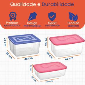 Caixas Organizadoras Topa Tudo 31L, 20L, 14L Brand SANTANA Base-material-type PLASTICO Marca SANTANA Organize com Eficiência com as Caixas Organizadoras Transparentes: Ideal para Empresas, Escolas, Bares, Restaurantes e Lanchonetes Precisando de uma solução prática e durável para organizar seus itens Apresentamos as Caixas Organizadoras Transparentes - sua resposta para manter espaços organizados de forma fácil e eficaz Com sua transparência e resistência, essas caixas são indispensáveis para empresas, escolas, bares, restaurantes e lanchonetes que buscam praticidade e qualidade. Com seu design transparente, estas caixas facilitam a identificação rápida dos itens armazenados, poupando tempo e esforço na busca por objetos. Seja para armazenar alimentos, materiais de escritório ou outros produtos, estas caixas proporcionam uma solução versátil e prática para a organização. Fabricadas com materiais de alta qualidade e livres de BPA, garantimos a segurança alimentar em seu estabelecimento. Você pode armazenar alimentos com tranquilidade, sabendo que estão protegidos de qualquer contaminação. Construídas para suportar o uso diário em ambientes comerciais movimentados, estas caixas são robustas e duráveis. Seu material resistente garante que permaneçam intactas mesmo após repetidas manipulações, proporcionando uma solução de organização confiável por longos períodos.Especificações do produtobr / Marca: Plasútil br / Modelo: Kit para banheirobr / Dimensões AxLxC : 31L 23x38x45cm 20L 21x30x45cm 14L 14x30x45cm br / Peso: 500gbr / Cores: Colorbr / Itens Inclusos: 1- Caixa organizadora 31L; 1-Caixa organizadora 20L; 1- Caixa organizadora 14Lbr / UTILIZAÍ DISTRIBUIDORAbr / br / Marca: Não Informado
