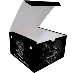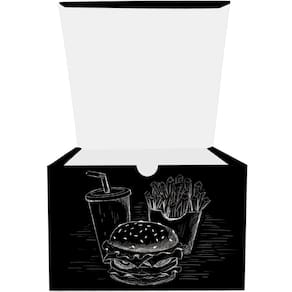 A Caixinha Box Embalagem para Hamburger Gourmet 300un Preto é a escolha perfeita para quem busca uma embalagem prática e funcional para hambúrgueres gourmet. Feita em cartão triplex preto, essa embalagem é ideal para consumo imediato ou delivery, sendo perfeita para food-trucks, lanchonetes, eventos e muito mais.