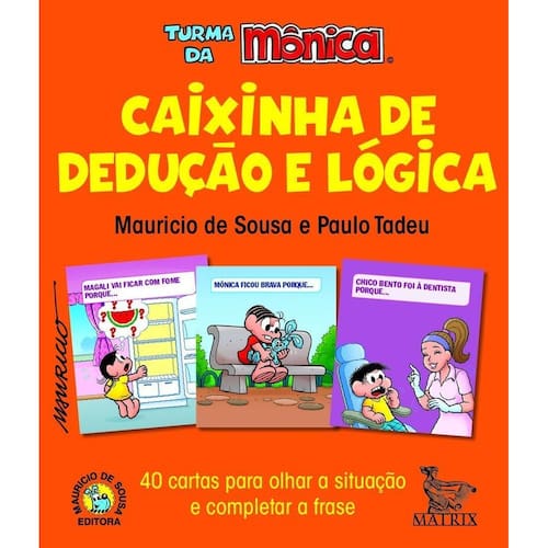 Este livro-caixinha traz os personagens da Turma da Mônica em situações para a criança usar a lógica e completar as frases junto de cada imagem ou responder às perguntas propostas. Um exercício para melhorar a interpretação, fazer inferências, presumir e deduzir, estimulando o pensamento, a linguagem e a criatividade.