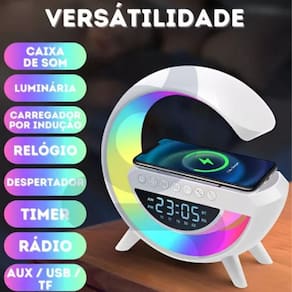 Caixa de som bluetooth, luminária rgb, relógio ,alarme, carregador por indução
