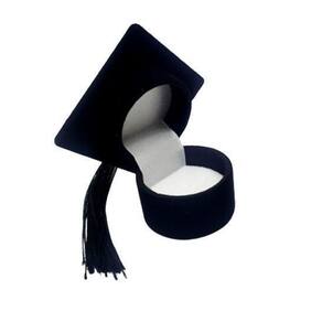 Descrição do produto Estojo em Veludo. Formato de Capelo. Chapéu de Formatura para anel ou brinco pequeno.