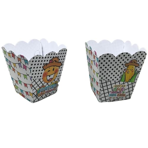 Deixe sua festa junina ainda mais especial com nosso Kit Festa Junina. Composto por 50 lindas caixinhas de pipoca. Você pode decorar e encantar seus convidados de forma única e divertida. Feitas com material resistente e estampas temáticas, essas caixinhas vão dar um toque especial ao seu arraiá. Características do Produto: - Material resistente - Estampas temáticas de festa junina - Tamanho ideal para porções individuais - Montagem fácil e rápida, sem necessidade de cola - Ideal para seus próprios doces criativos