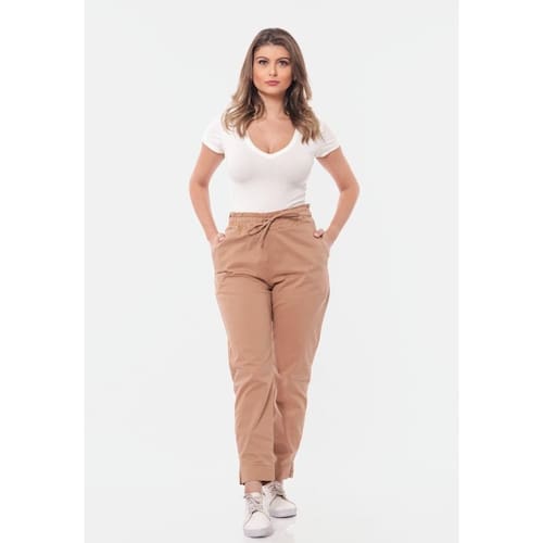 Essa calça com elástico no cós é nossa proposta para o máximo de conforto que uma calça de sarja pode proporcionar.
