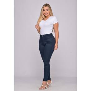 Calça em sarja lycra, modelagem que se ajusta ao corpo.