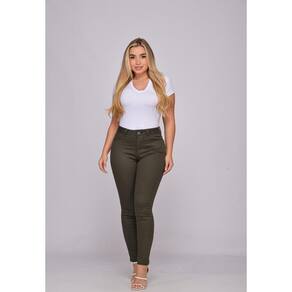 Calça em sarja lycra, modelagem que se ajusta ao corpo.