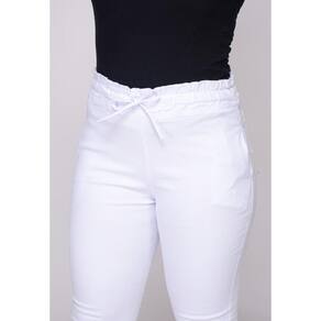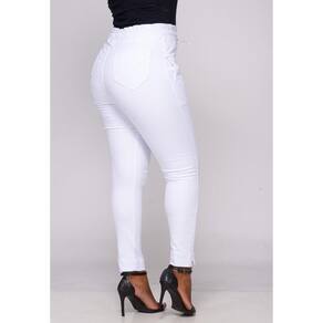 Calça sarja lycra, modelagem que se ajusta ao corpo.