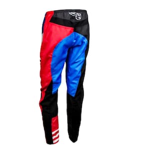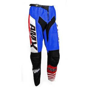 Calça Amx Prime Moto Azul Branco Vermelho, regulagem leve, ventilado e resistente para uso motocross, trilha, bike, pedalada, velocross e downhill.