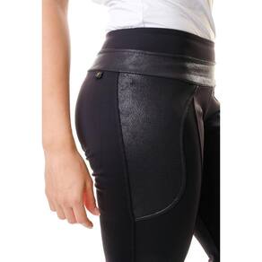 Características Estilo clássico, cor com leve brilho Cintura alta com elástico interno Recortes que realçam seu corpo em tecido courino Tecido Emana Plus poliamida 84% e elastano 16% - cor preto Benefícios Conforto, segurança durante seus movimentos Cintura alta esconde gordurinha localizada Não desce no corpo Sem transparência Tecido com tecnologia Emana Plus ativa a micro-circulação sanguinea aliviando sua musculatura Tecido com proteção UV 50+, mais proteção para sua pele e saúde contra raios ultra-violeta Tecnologia easy-care (não precisa passar), maciez ao toque Secagem rápida Não desbota nem mancha Dicas de usoLegging para atividades físicas, Funcional, Yoga, Academia, Crossfit, Pilates, Casual