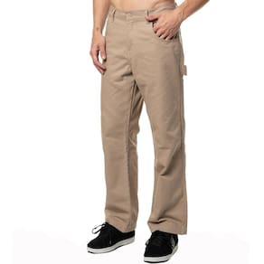 Calça Billabong carpinteiro com fechamento em botão, bolsos embutidos, bolsos diferenciados nas laterais, loop para martelo, dois bolsos na parte traseira e etiquetas personalizadas.