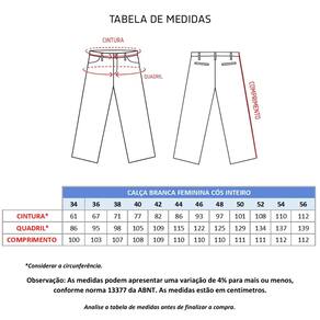 Composição: Tecido Sarja, 98% Algodão e 2% Elastano