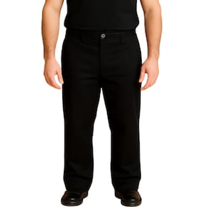 Benefícios - Conforto: o elástico na cintura proporciona ajuste sem apertos - Ajuste seguro: modelagem tradicional que se adapta ao corpo sem limitar os movimentos - Durabilidade: tecido brim reforçado para uso diário em ambientes profissionais - Praticidade: fechamento em zíper e botão facilita vestir e remover