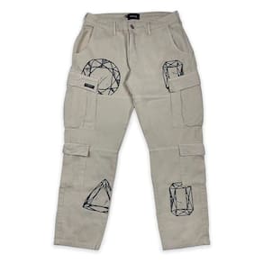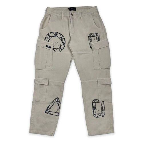 A Calça Cargo Diamond Supply Jewels M65 é feita em 100% de algodão garantido qualidade e durabilidade, possui caimento solto no quadril e coxa, possui bolsos laterais cargo, o estilo fazem parte muito forte na cultura Streetwear, a Calça Cargo Diamond Supply Jewels M65 possui estampas com diamantes que são o logotipo da marca e deixam a peça com mais exclusividade.