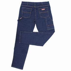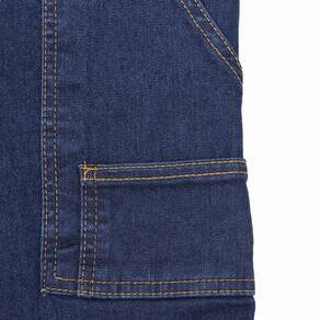 Calça jeans masculina na qualidade Land Horse modelo Carpinteira, fabricada em tecido 68% Algodão, 30% Poliéster e 2% Elastano na cor Azul, possui 3 bolsos na frente e 2 atrás em modelo tradicional e 1 lateral, rebites de metal e botão personalizado.