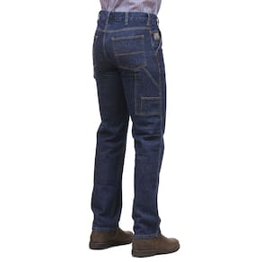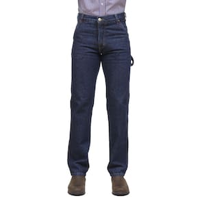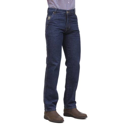 Calça jeans masculina na qualidade Land Horse modelo Carpinteira, fabricada em tecido 100% Algodão na cor Azul Escuro, possui 3 bolsos na frente e 2 atrás em modelo tradicional e 1 lateral, rebites de metal e botão personalizado.