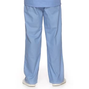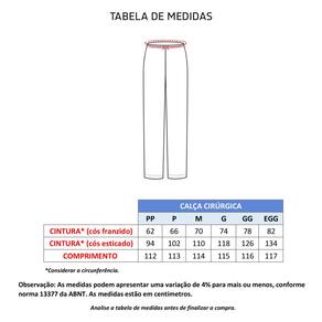 A Calça cirúrgica é confeccionado em brim leve, tecido 100% algodão.