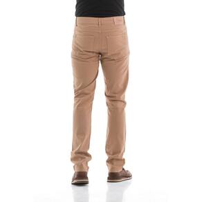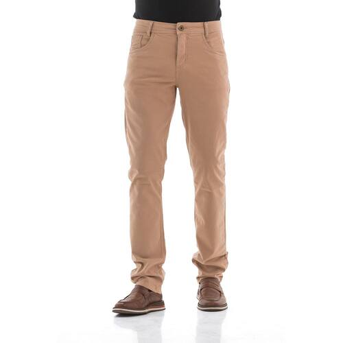 É uma calça com modelagem conservadora, mesmo padrão da clássica, ou seja, não fica super justa, possui pernas retas, porem levemente ajustadas ao corpo devido a rigidez do elastano em sua composição. É a peça indispensável no guarda roupa masculino, transitando em várias ocasiões de uso, desde o casual ao Sport-chique.