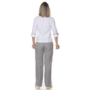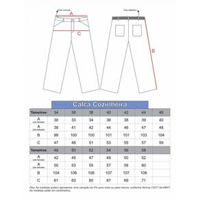 A Calça Cozinheira é confeccionada em tecido brim leve PIED POULE.