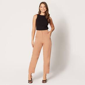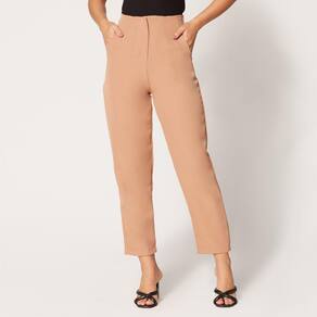 Calça de Alfaiataria Cintura Alta Marrom Claro