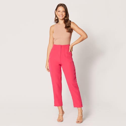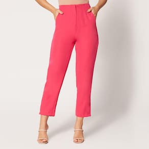 Calça de Alfaiataria Cintura Alta Rosa
